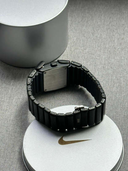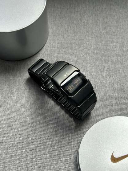 This rare Nike D-Line Black Digital Watch features a bold, futuristic design with a full black stainless steel bracelet and a sleek digital LED-style display. Originally released in the early 2000s, the Oregon Series remains one of Nike’s most sought-after watch collections thanks to its minimalist yet industrial aesthetic.