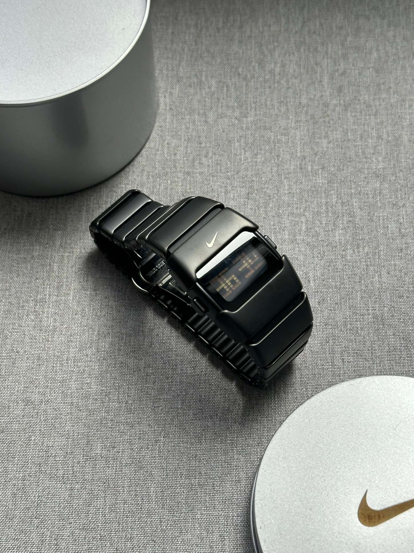 With its unique segmented band and discreet Nike swoosh logo, this watch makes a statement both as a collector’s item and a daily wearable accessory.